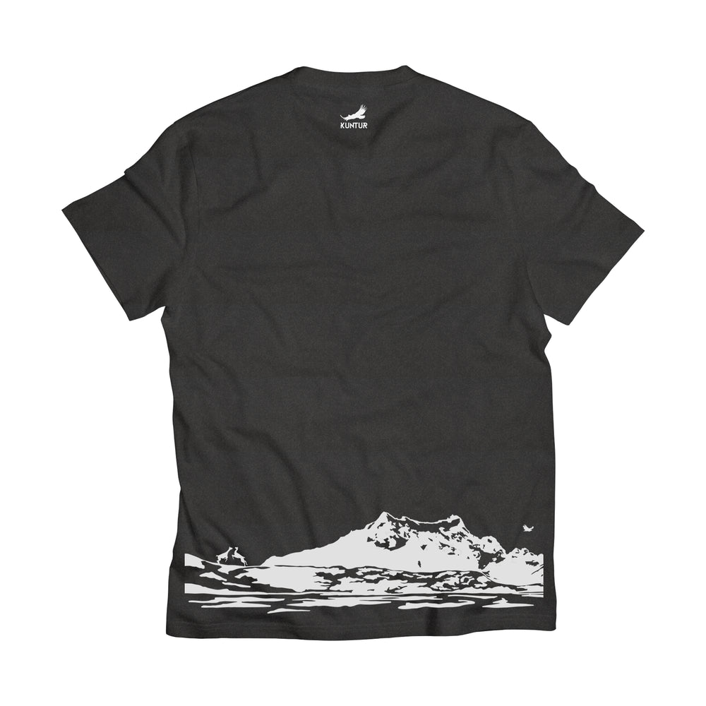 En esta polera, se aprecia un estampado en ambos lados, que expone tres de las grandes montañas del Macizo: